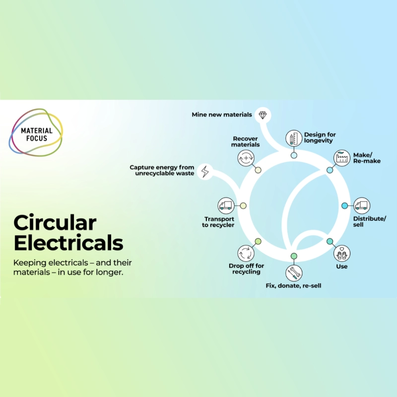 Material Focus is a not-for-profit organisation whose goal is to stop the nation throwing away or hoarding all their old, small electricals. Material Focus is delivering the UK-wide Recycle Your Electricals campaign. The campaign is revealing the value hidden in electricals and is making it easier for us all to recycle and reuse the small electricals we no longer need by providing more recycling points as well as providing practical information on how households can reuse and recycle.